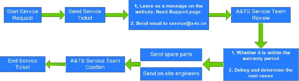 1, An existing A&TS customer could start the after-sales service request on the Need Support page, or send email to service@a-ts.cn. | ||