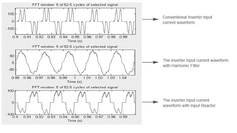 Input AC Reactor is applied at the AC drive input side to suppress inrush voltage. It is designed to reduce inrush & peak current, to improve the real power factor, to restrain the grid harmonics and to improve the input current waveform.